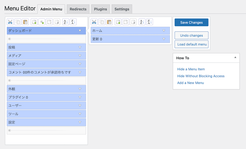 不要なメニューを非表示にしたり表示順序を変更したり、メニュー名を変えることなど、さまざまなことがこのプラグインでできます。