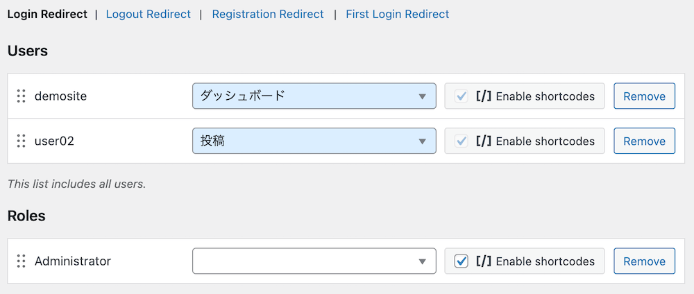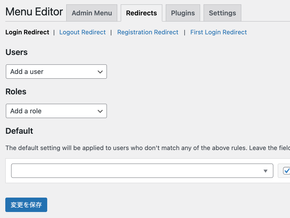 例えば管理者はダッシュボード、投稿編集を主とするユーザーなら投稿画面へといったように、ログイン後のリダイレクト先を設定できます。