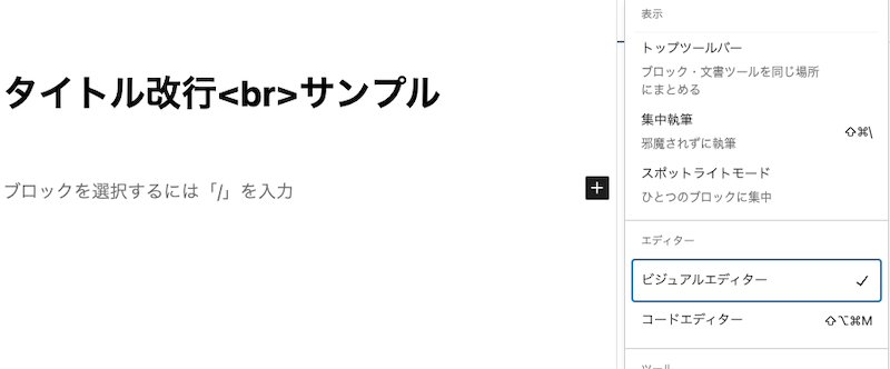 編集画面でこのように表示されていれば、the_title() などで出力した時に改行されて表示されます。